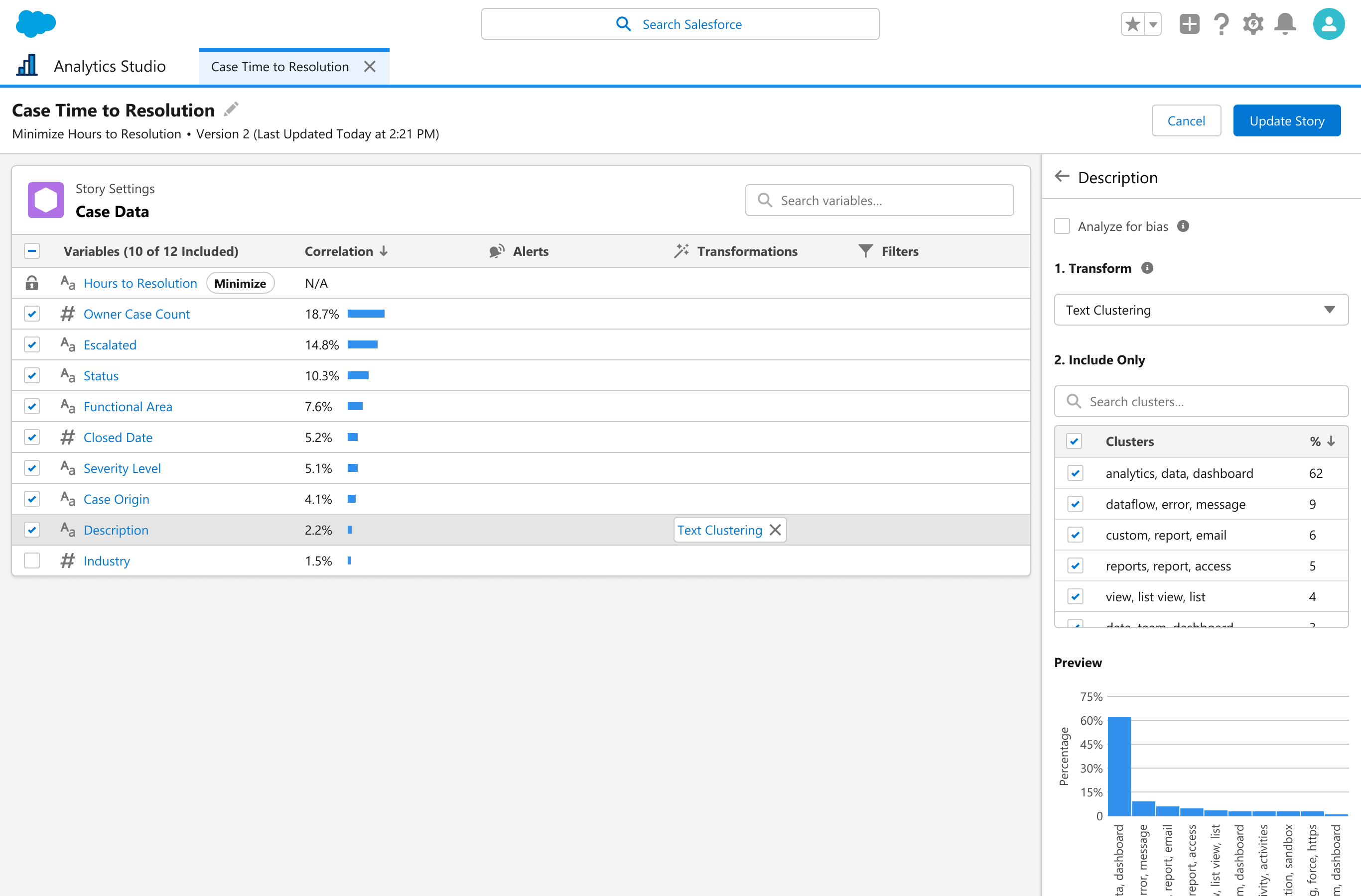 CRM Analytics - Einstein Discovery: Text Clustering - Salesforce