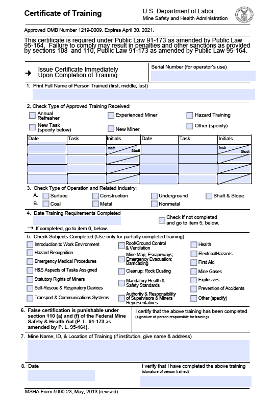 Fillable Online MSHA - Form 5000-3 (Ce…