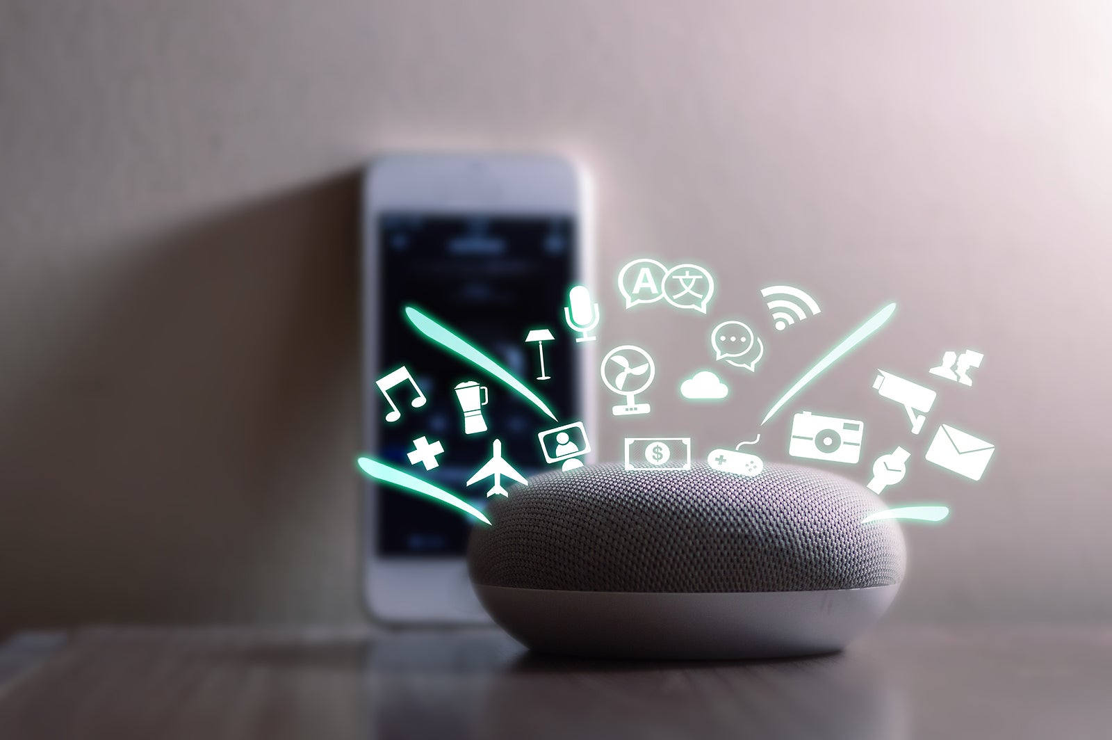 Smart Home Assistant Device On Table Stock Photo 1969550866 | Shutterstock